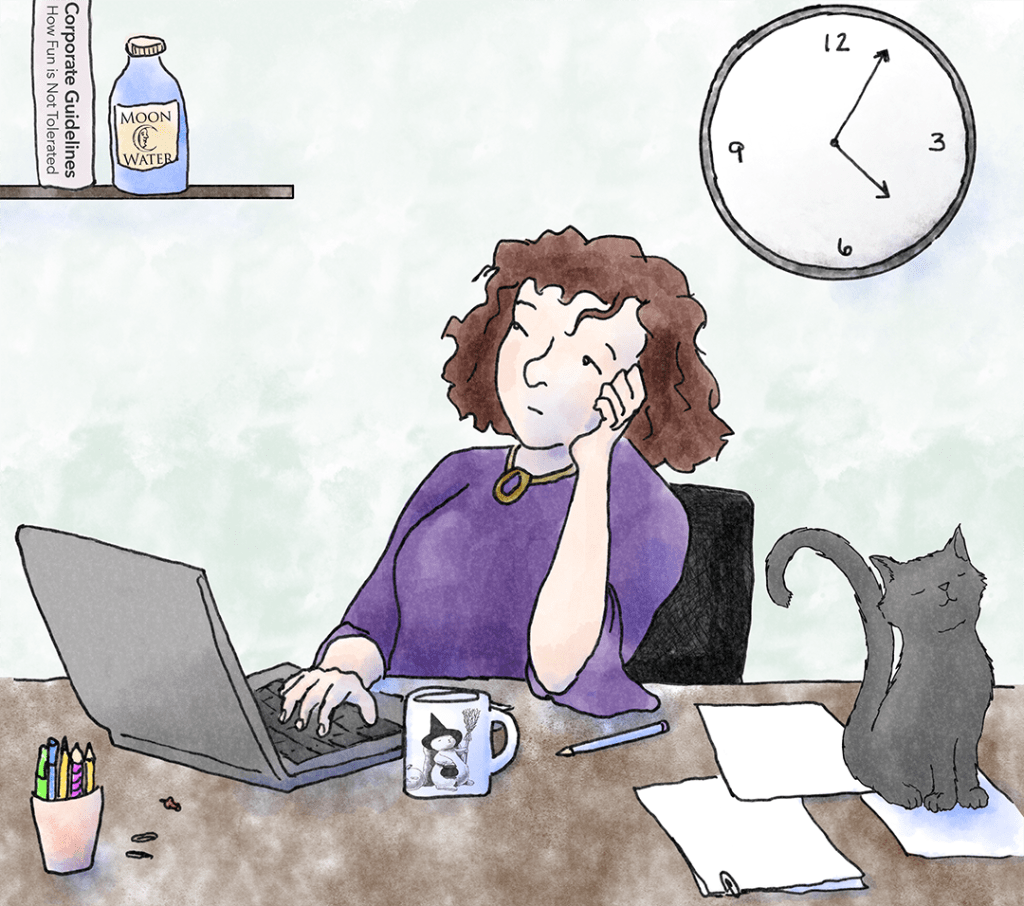 Lucinda is an ordinary garden witch, with a job and a family, who makes all kinds of healing potions and remedies. She likes to do good. She has to work an ordinary job, and she hates her commute. When the train gets so crowded it becomes unbearable, she turns into the dark witch Wartney Von Crone. Then all kinds of bizarre things happen on the the journey.