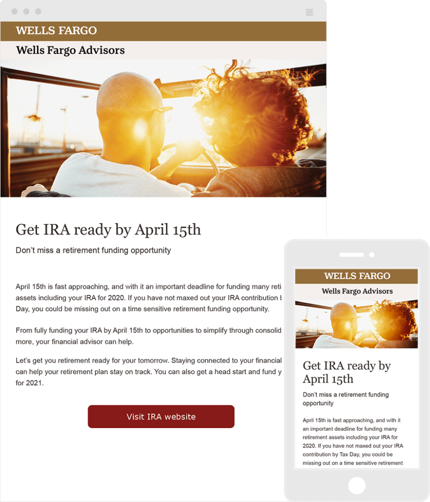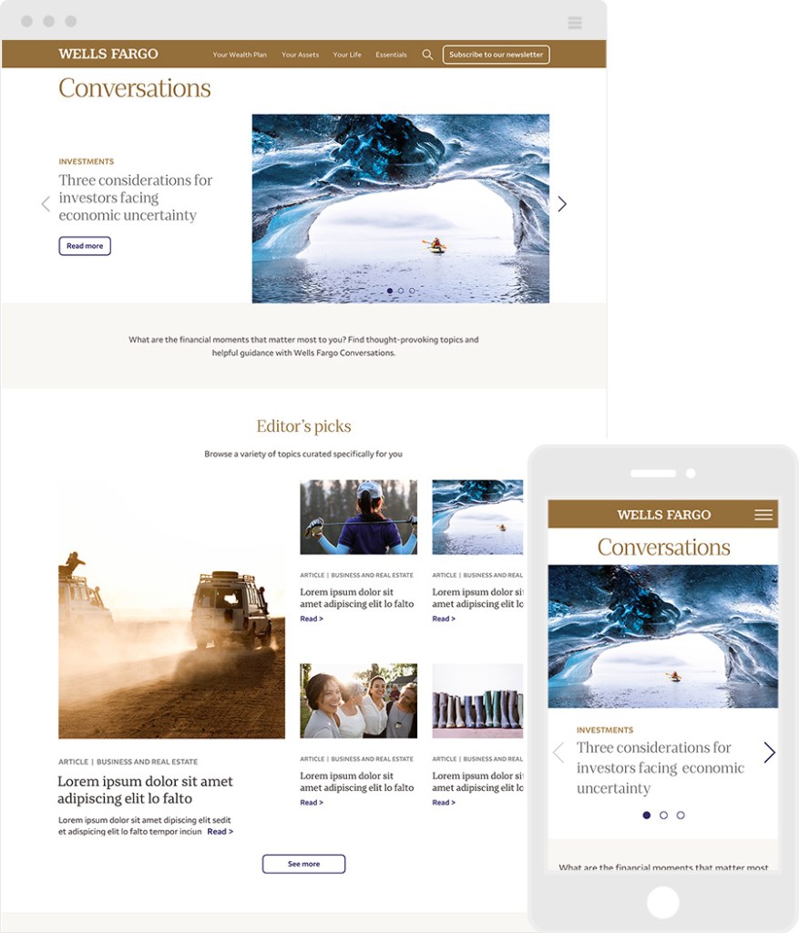 Conversations MagazineAnnual Wells Fargo Advisors retirement campaign including a direct mail test between a self-mailer and a postcard as well as email and on-site banners.